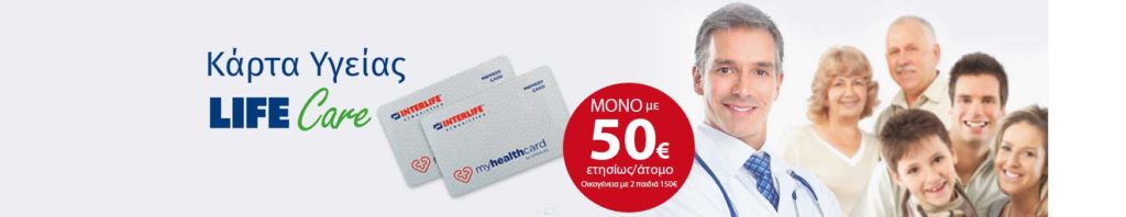 Η κάρτα υγείας Life Care, αποτελεί την πλέον ολοκληρωμένη πρόταση στον τομέα της Πρωτοβάθμιας Περίθαλψης με ετήσιο κόστος MONO 50€ για ένα άτομο και 150€ για όλη την οικογένεια.